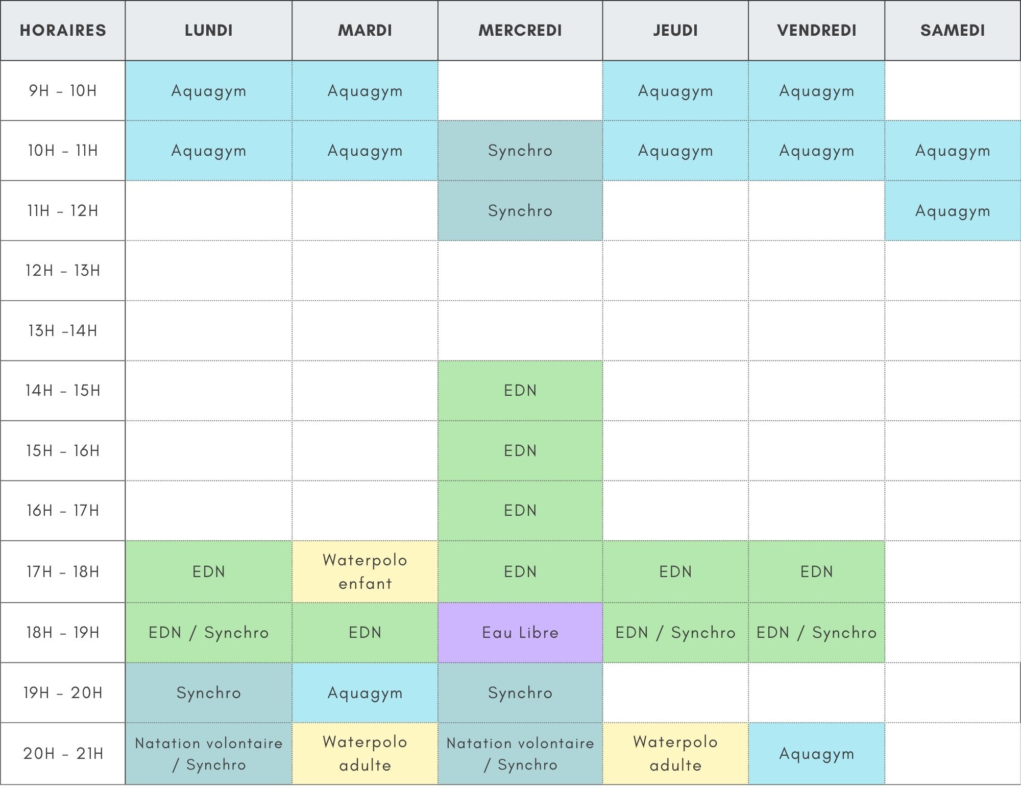 Vous trouverez ci-dessous les horaires des différentes activités du Club.