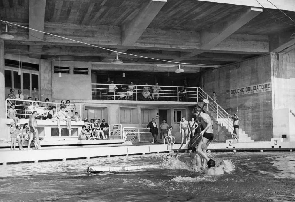 En 1936, quelques années après la fermeture du palace “Le Roubion”, le Sporting Club Corniche fondé par Ernest Pelatan acquiert le terrain et la réserve à poisson pour y mettre le siège d'une assocation sportive alors essentiellement tournée vers le football. Le bassin est naturellement alimenté par l'eau de mer non filtrée. En 1939 le bassin en sa forme actuel est inauguré.